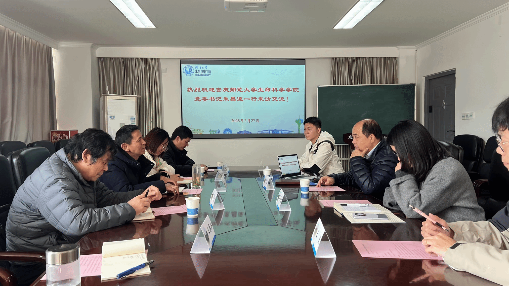 日前,公司党委书记朱昌流率队赴河海大学水利水电公司进行调研交流,河海大学水利水电公司副经理冉启华、副经理俞晓东、党委副书记戴媛媛等接待了朱昌流一行,水力学及河流动力学研究所教师惠辞章,研究生辅导员陈思思及博士研究生王昊,公司水生生物保护与水生态修复安徽省高等公司工程技术研究中心负责人于道平教授及团队成员陈敏敏、连玉喜、汪存石参加了座谈会。