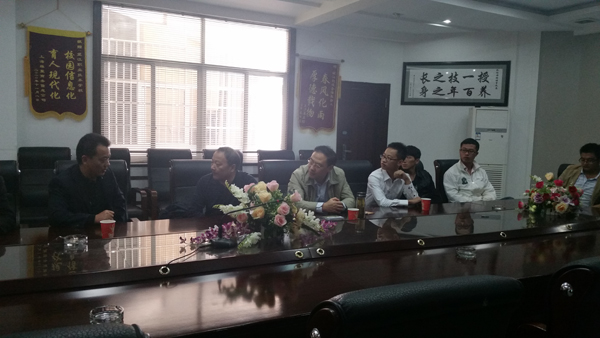 在皖江职业技术公司,副董事长欧阳永卫、教务主任杨立新等一行校领导陪同公司领导老师参观校园,对该校的办学模式、发展进程和近几年所取得的成绩一一介绍。座谈会上,欧阳董事长首先对我们公司派送来的优秀员工予以充分肯定,尤其对他们能吃苦耐劳的敬业精神和主动向老教师请教的积极态度大为赞扬,并迫切希望他们能长期留任。杨主任也针对该校教工资源短缺等问题与公司老师进行深刻探讨,罗国全书记表示可针对对口专业如园林、生物等进行技术交流,并提供相应的专业协助,两位校领导表示感谢。龙格格同学代表该校5名支教生作发言,她表示对于该校军事化的教学管理模式表示一定的认同,感谢校领导对于他们工作生活上的指导和关心,会将自己在大学里所学的专业知识融入到教学工作中,不辜负母校对他们的期盼。