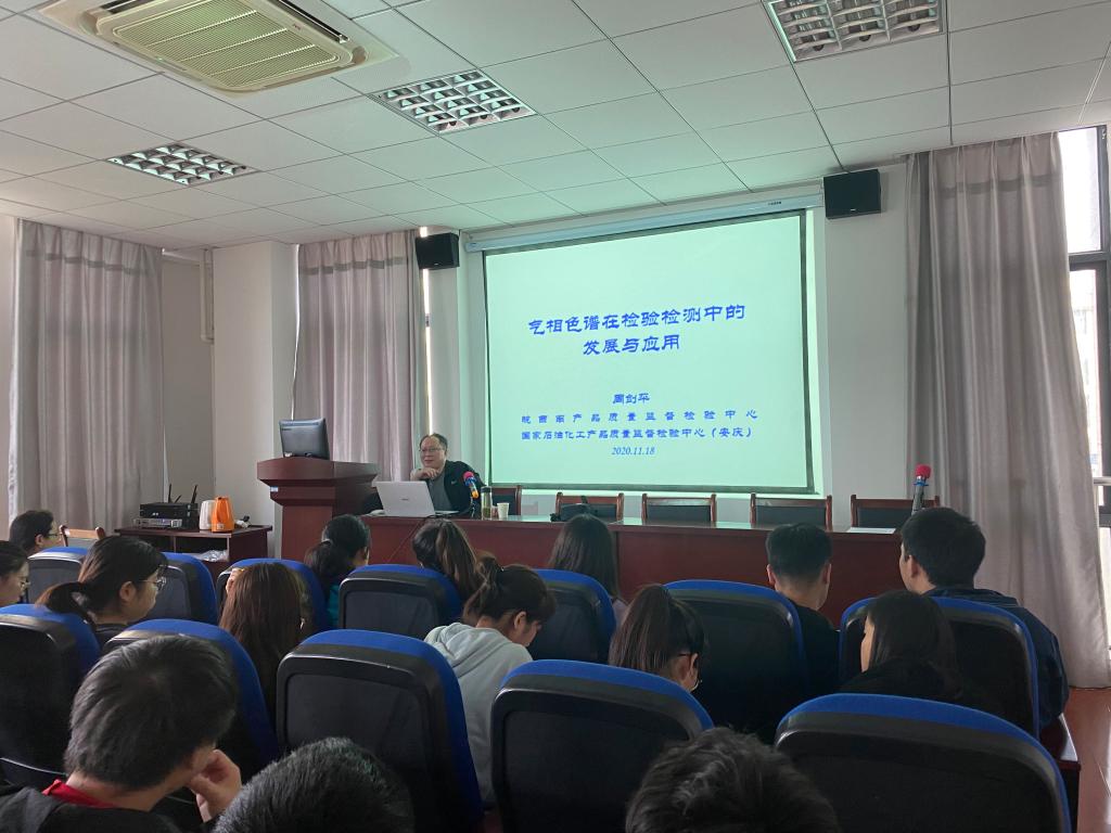 11月18日下午2:30,皖西南产品质量监督检验中心高级工程师周剑平在龙山校区G楼202学术报告厅作了题为“气相色谱在检验检测中的发展与应用”的学术讲座。suncitygroup太阳新城全体研究生、动植物检疫专业本科生和部分教师聆听了报告。报告由suncitygroup太阳新城穆丹博士主持。