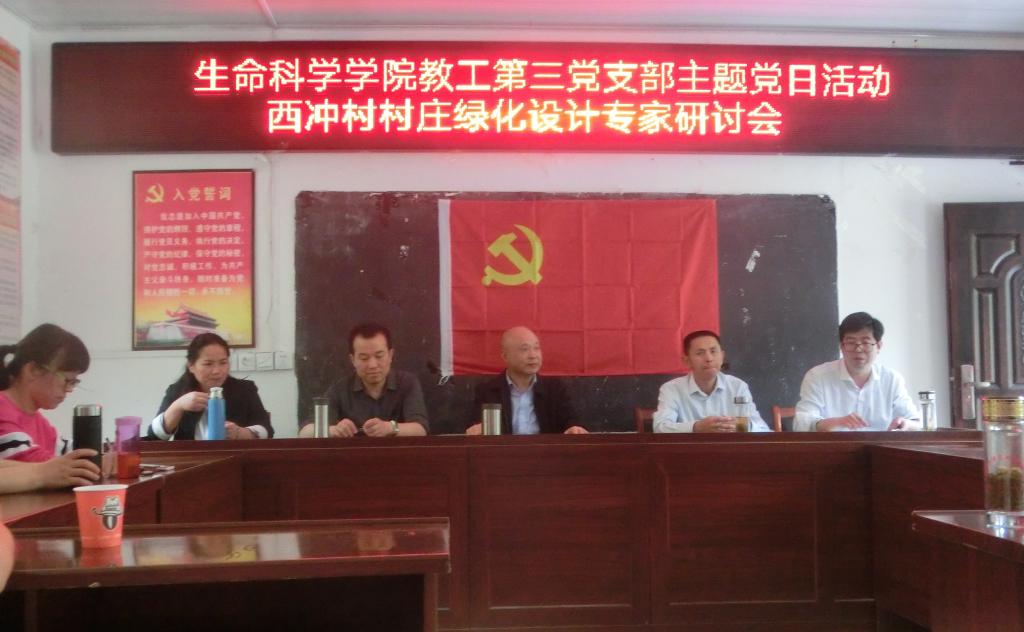 活动中西冲村党员和村干部代表介绍了村庄情况,提到该村处于两山夹一沟的特殊地形地貌,景色优美,资源丰富,现阶段主要任务是进行美好乡村建设,其中包括村庄道路及场地绿化设计。第三支部党员主要由植物教研室和园林教研室教师组成,了解到村庄具体情况及进行场地现场勘察后,各位党员根据自己所学专长纷纷提出绿化提升建议。