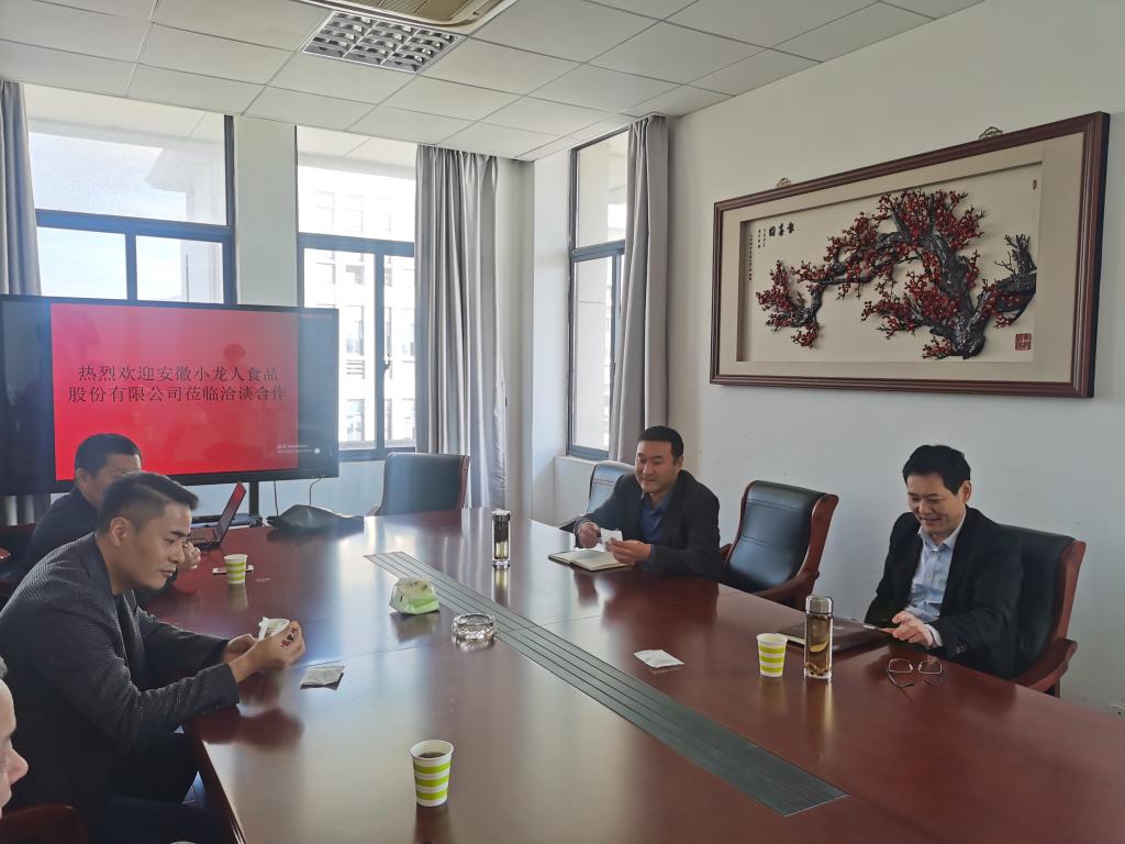 10月20日,安徽小龙人食品股份有限公司总经理李志兴一行莅临suncitygroup太阳新城洽谈合作,公司科研处处长江贵生、公司经理周多奇出席洽谈会。
