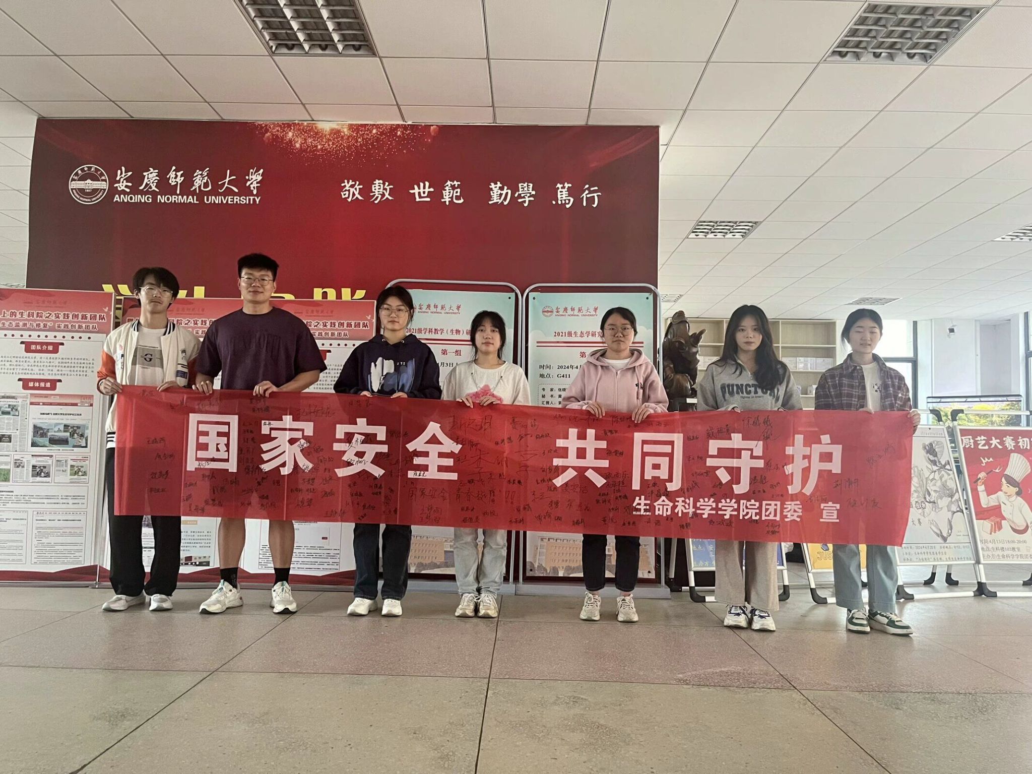 宣讲结束后,同学们踊跃地在宣传横幅上签名,表明自己坚决维护国家安全的决心。“我一定要更好地掌握国家安全知识,坚决维护国家安全。”2023级生物科学类1班的宋佩景在宣讲后感悟道。