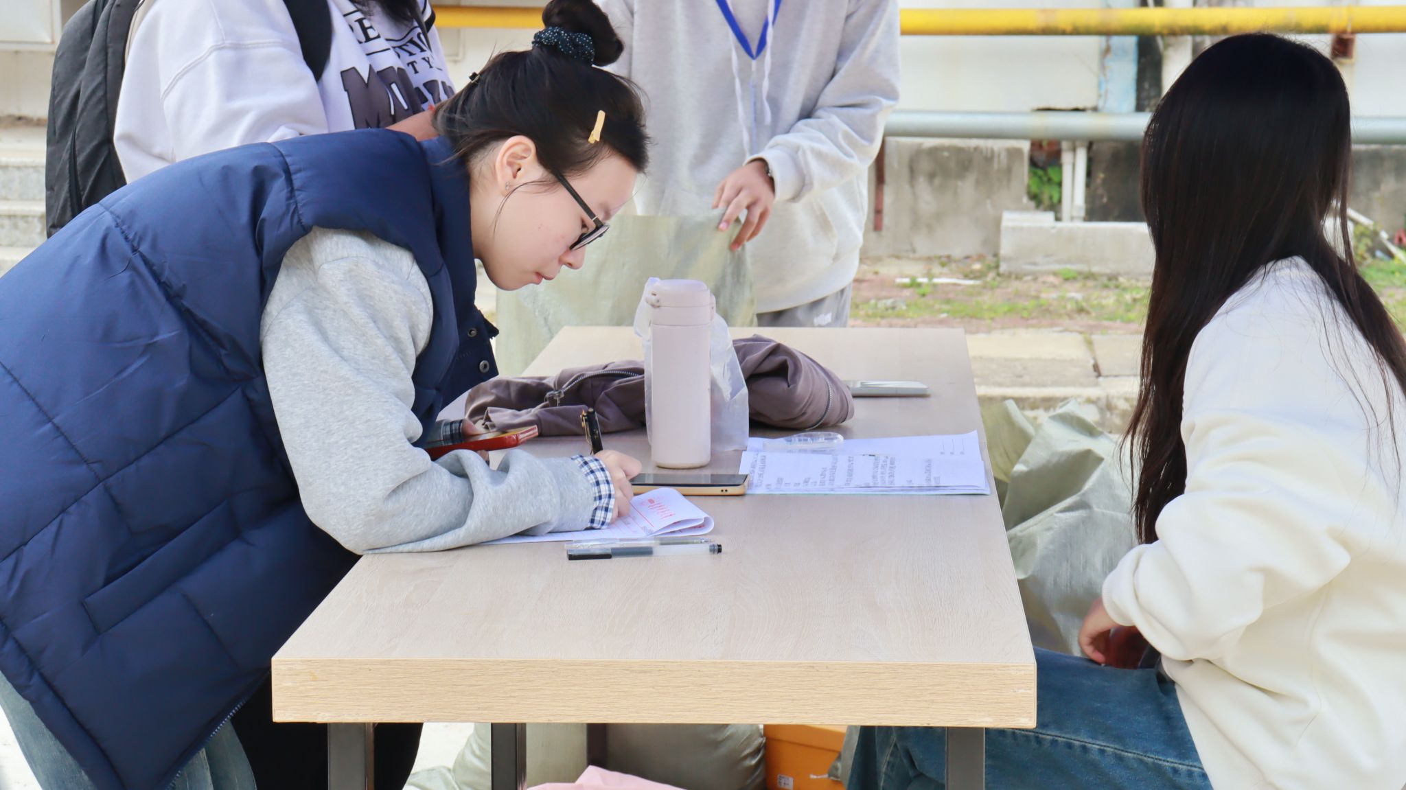在捐赠过程中,志愿者们热情接待每一位捐赠者,耐心解答他们的疑问,引导他们填写捐赠信息表,并对捐赠衣物进行初步的检查和分类,同时也在登记册上进行了相应的记录。