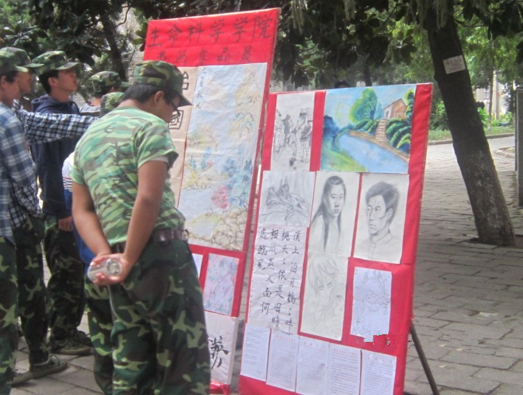 2013年9月29日中午,经过院员工会宣传部的精心评选,一批书画精品终于在菱湖校区31栋宿舍楼前展出,期间吸引了路过的众多同学驻足观赏。本次书画大赛共征集了近百幅作品,分书法和绘画两个大类,分别有楷书、行书、隶书、水墨画、油彩画、素描、硬笔书法等各种形式作品,其中不乏优秀作品,如12级园林的裴文静同学的水彩山水画及11级生科1班的汪语梵同学的硬笔楷书,都给同学们留下了深刻的印象。
