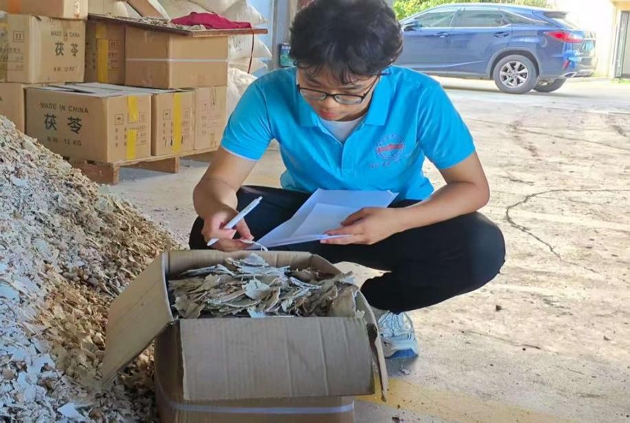 队员们充分发挥跨专业特长,拍摄茯苓种植与加工实景,记录“三下乡”精彩瞬间,为后续宣传积累素材。同时,团队成员们通过问卷调查和一对一访谈,系统收集农户在种植中遇到的问题与建议,形成一线调研资料,为产业报告撰写奠定基础。团队还联合岳西县中药材协会、安徽贺林中药饮片科技有限公司,为优质中药材加工基地建设提供技术支持,推动产业链协同发展。