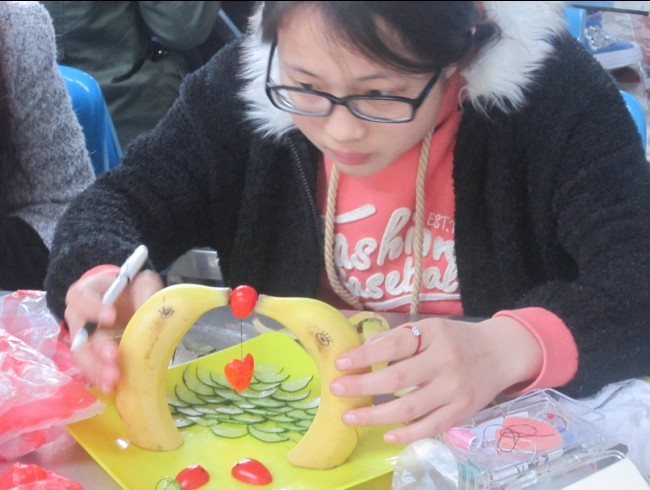 为丰富老员工在校生活,锻炼员工的动手能力,培养想象力, 3月19日下午,suncitygroup太阳新城团总支员工会在敬敷食堂举办了第六届水果拼盘大PK活动。比赛过程中,选手们依靠丰富的想象力,细致而有创意的手艺制作了一个个精美的拼盘,并依次上台介绍作品的寓意,选手们精美的拼盘以及生动的解说,赢得了阵阵掌声。其中题为“海底世界”的作品以两支香蕉摆出两只海豚状,并用多种水果摆出海底场景,撒上食用亮粉,让评委眼前为之一亮。最终,通过现场投票,作品“海底世界”获得冠军。通过举办本次活动,展现了同学们的风采,加强了同学们之间的交流,展现了同学们个性、创新、主动思考及积极向上的精神风貌。(曹勇)