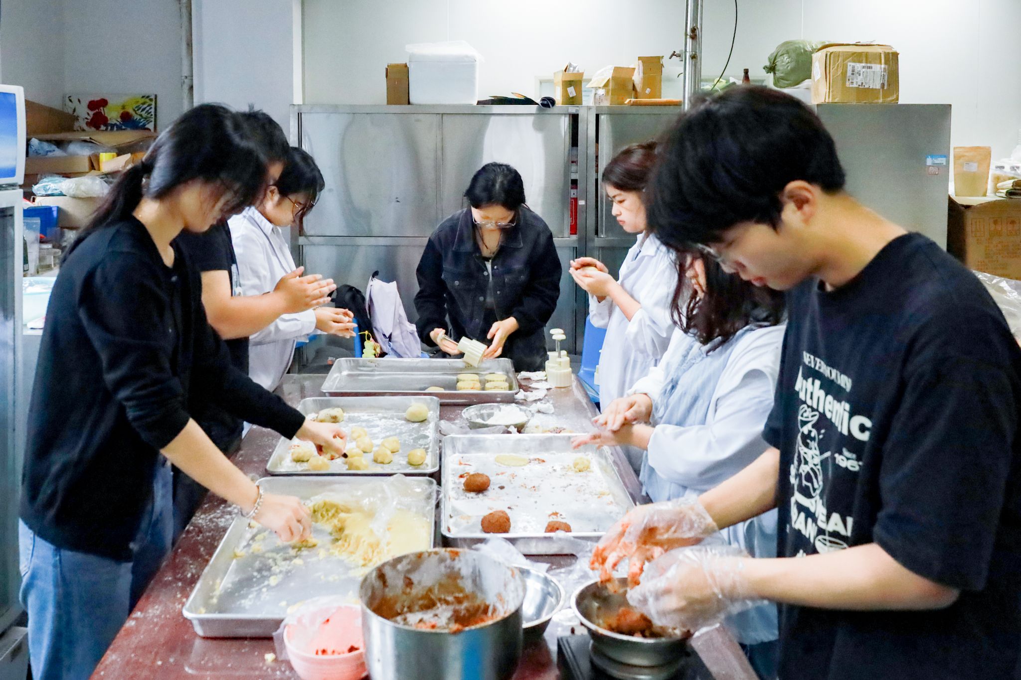 相较于市售月饼,这份亲手制作的礼物蕴含着深厚的情感与扎实的专业保障。活动负责人、老员工创意食品工艺协会社长李忆茹透露,从馅料调配到烘烤成型,每个环节都融入了制作团队的用心。而且令人安心的是,所有流程均在标准化实验室完成,原料经严格筛选,还特邀经验丰富的烘焙师傅现场指导,确保食品安全与品质。“市面上买不到这样‘独家定制’的月饼,”李忆茹笑着说,“我们很高兴用上专业所学,为新生送上独一无二的师大心意。”