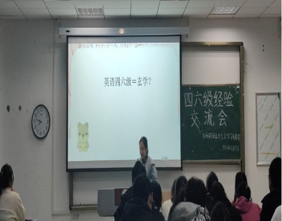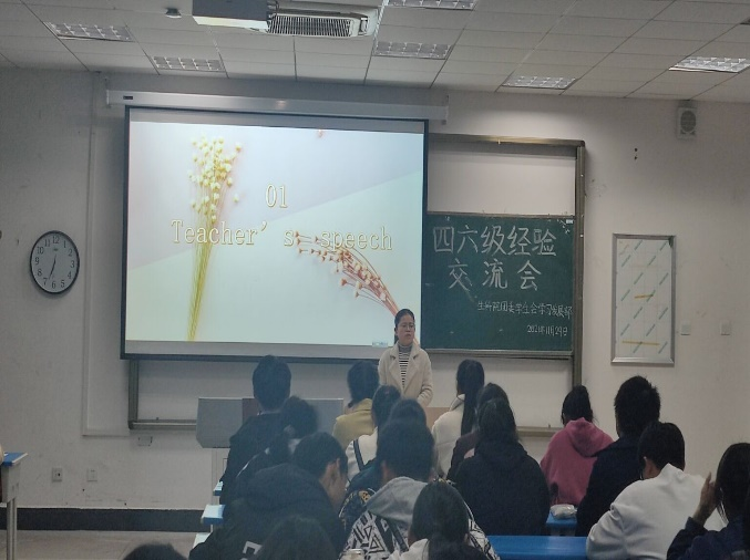 为了帮助同学们能掌握考试技巧,保持平和心态,沉着冷静应对四六级考试,11月29日,suncitygroup太阳新城在103教室举办了四六级经验交流会。参加此次交流会的有院团委负责人徐启凤老师,外国语公司张玮老师,同时邀请了三位四六级考试成绩优异,经验丰富的同学做经验交流。