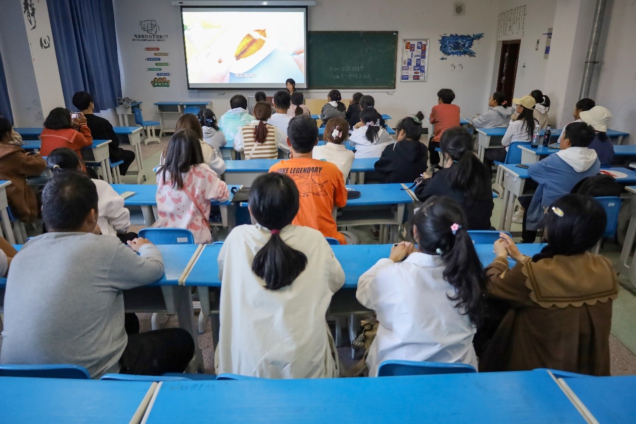 刷掉叶肉、拭去水分、涂上颜料、塑封剪裁,学前教育专业2022(1)班的樊梦静按照讲解步骤,成功做出了自己人生中的第一个叶脉书签。“之前有了解一些叶脉书签的制作方法,但由于缺乏设施,自己没能尝试制作叶脉书签,今天也算是圆梦啦。”她笑称,看到叶脉书签成功后,自己忍不住就对它进行“三连拍”,并发给家人、朋友欣赏。