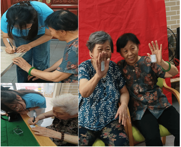 黄文娟、李翠萍、许吉言……团队成员们将一个个写有老人名字的挂件送给老人,以表达团队对老人们的祝福。据生物科学类专业2022(5)班的袁甜甜介绍,这些名字全部由团队成员手写,挂件的背后则是成员对老人身体健康的美好祝福。“准备时心情非常甜蜜,我们很期待他们收到惊喜后的反应。”