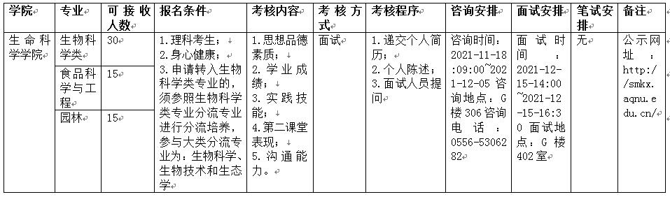 二、转专业必须参加转入专业的综合考核,按考核成绩的名次先后,确定是否转入,具体考核内容见下表。