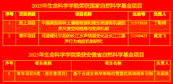 近日,国家自然科学基金委员会和安徽省科技厅陆续公布了2025年度国家基金和省基金立项结果。suncitygroup太阳新城斩获3项重要基金项目。其中,国家基金面上和青年项目各1项,省基金青年项目B类(原优青项目)1项。省基金优青项目实现了公司科研工作的重大突破。