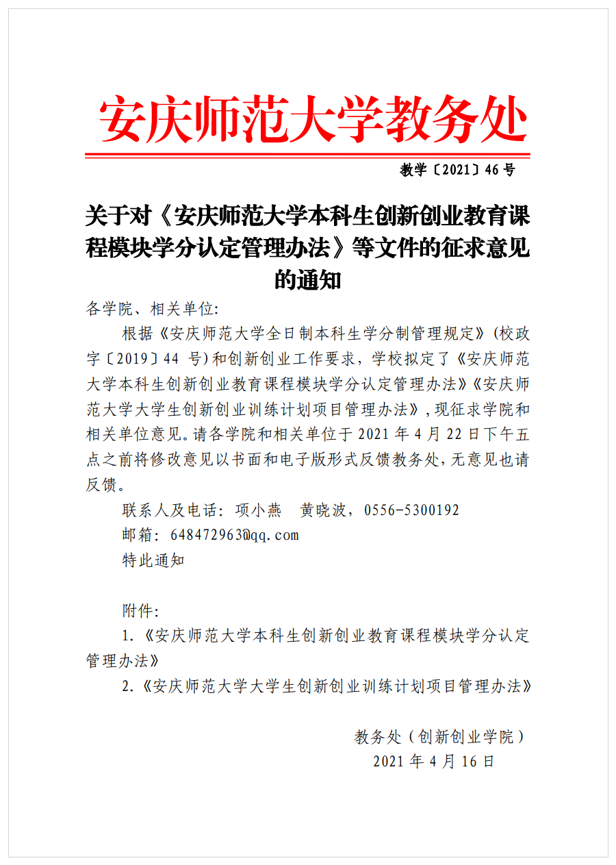 关于对《suncitygroup太阳新城本科生创新创业教育课程模块学分认定管理办法》等文件的征求意见的通知