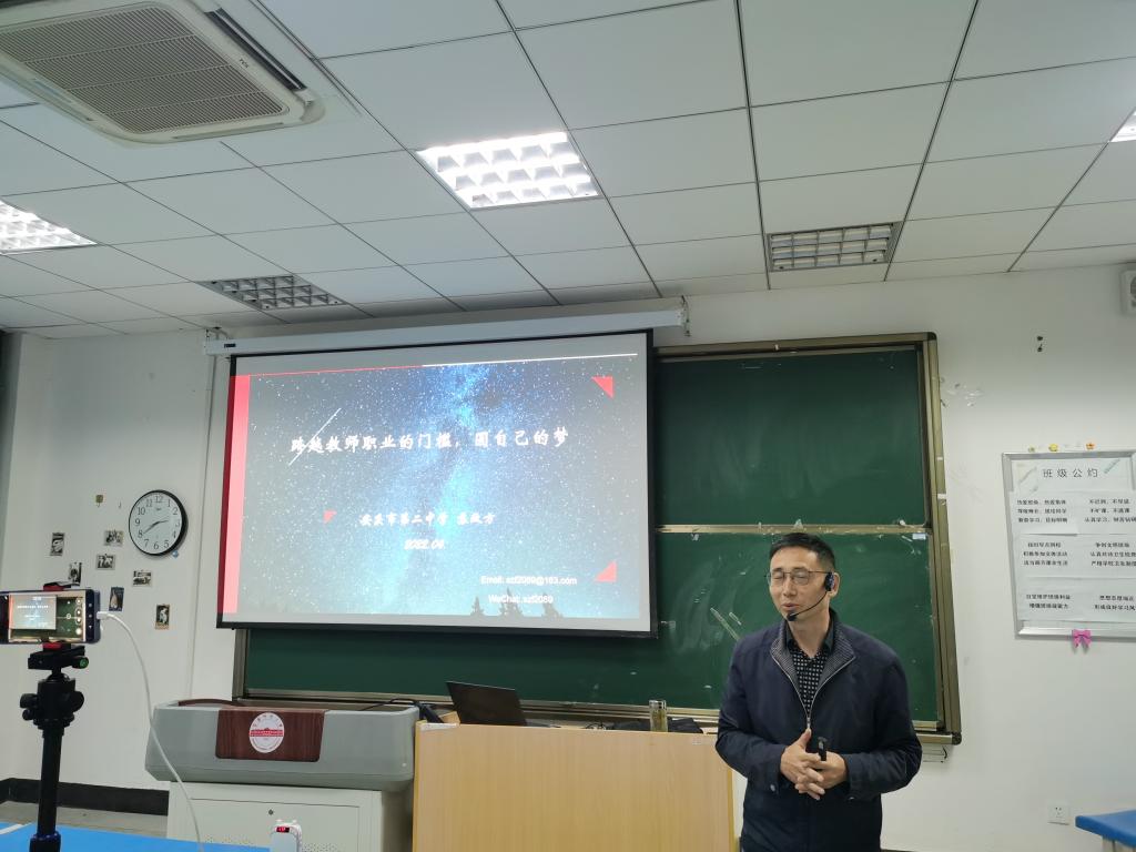 4月28日下午,安徽省特级教师、安庆二中正高级生物教师兼suncitygroup太阳新城硕士研究生校外导师苏政方在龙山校区生物楼103教师做了题为《跨越教师职业的门槛,圆自己的梦》的学术讲座。suncitygroup太阳新城本科生聆听了报告,报告由suncitygroup太阳新城副经理吴彦教授主持。