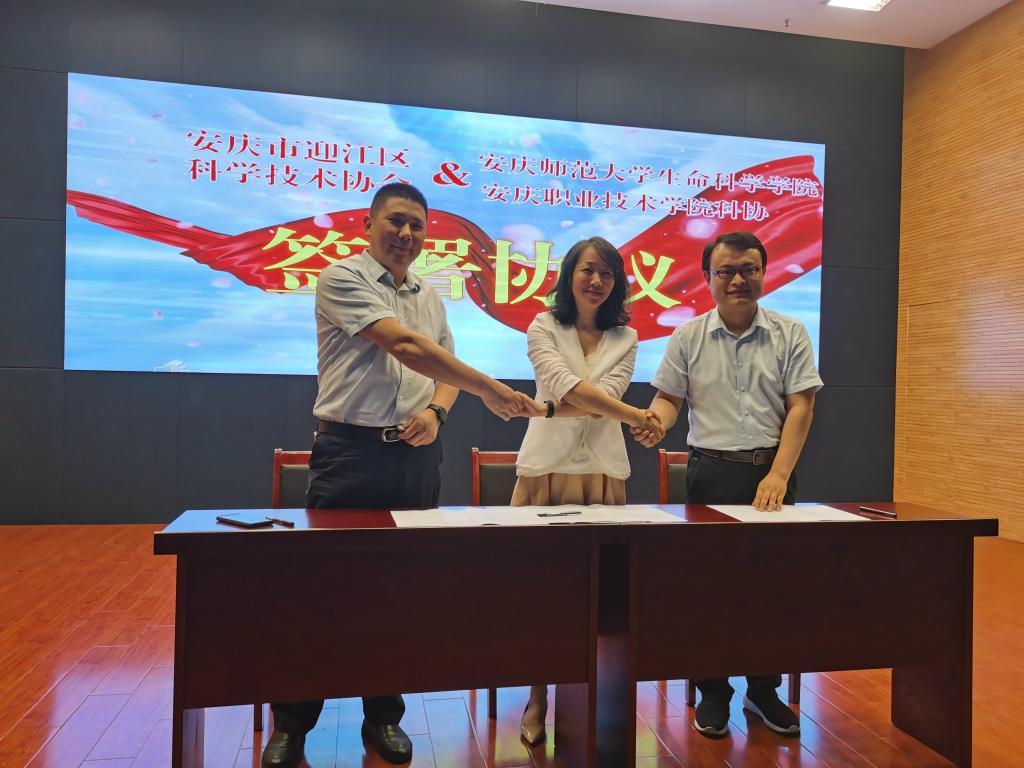 suncitygroup太阳新城一行首先参加了迎江区2022年最美科技工作者发布仪式。随后教务处副处长闻军与迎江区科学技术协会主席周逸群签署了实践教学基地协议,suncitygroup太阳新城经理周多奇和迎江区委组织部部长陶小也为实践教学基地揭牌。