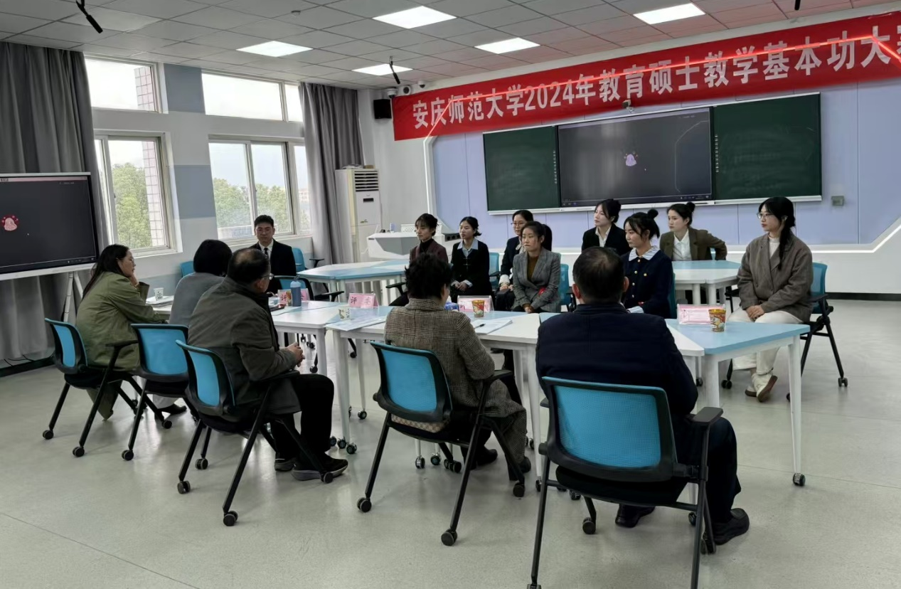 本次大赛旨在提升教育硕士生的公司产品能力。比赛分为三个环节,包括教学设计、课件制作和上课。在模拟授课环节中,刘浩然和汤子琳巧妙融合了传统板书与现代多媒体课件,辅以实物展示和精心制作的手工教学模具,为在场的评委和观众呈现了一场生动的教学演示。