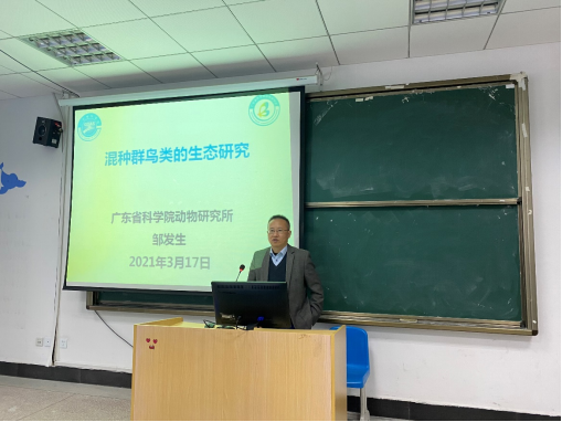 3月17日下午,广东省科公司动物研究所邹发生研究员在公司龙山校区G楼101教室作了题为“混种群鸟类的生态研究”的学术报告。suncitygroup太阳新城2018级动植物检疫专业本科生、2019和2020级生态学研究生和相关教师聆听了报告。报告由suncitygroup太阳新城副经理吴彦教授主持。