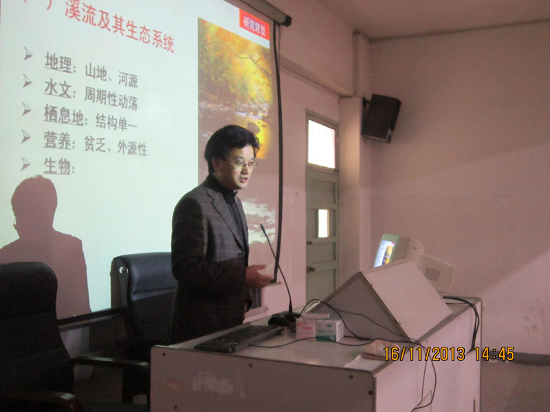 11 月 16 日 下午,安徽师范大学严云志教授应邀在菱湖校区414教室作了“溪流鱼类生态学研究——以皖南山区为例”专题学术讲座。suncitygroup太阳新城100多名师生聆听了报告,报告会由suncitygroup太阳新城副经理魏和平博士主持。