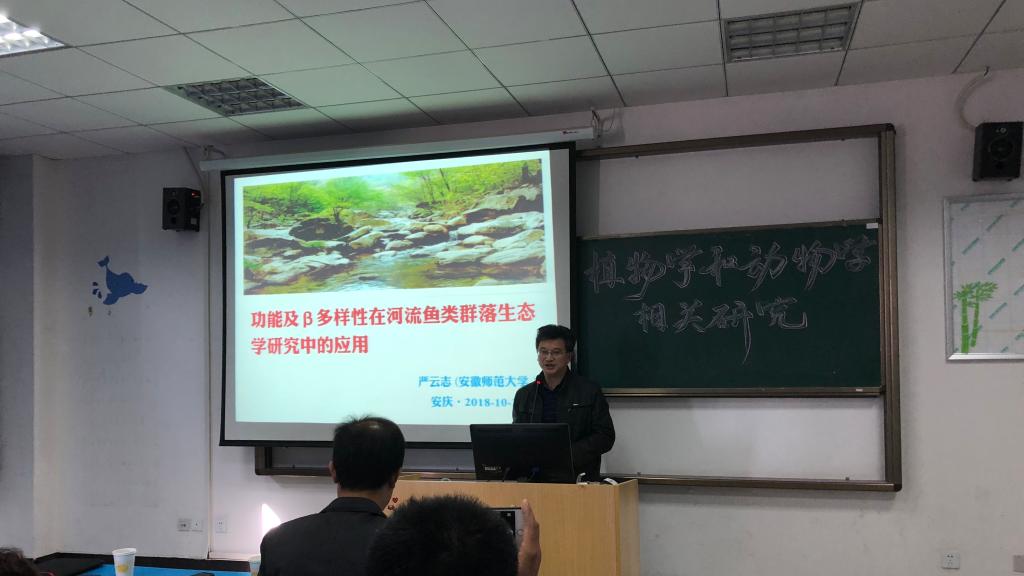 本次讲座严云志教授就自己多年的研究介绍了河流的生态特性,鱼类多样性研究进展,β多样性与功能多样性在河流鱼类群落生态学研究中的应用等。在本次讲座中,严教授结合自己多年的科研实践,从β多样性与功能多样性的概念,在河流鱼类群落中研究中应用等方面展开。深入浅出、形象生动的向大家阐述了河流鱼类多样性对人类干扰的响应,并和大家分享了自己最新的研究成果。
